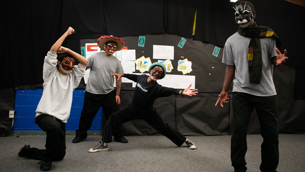 For more than six years, TAGYP has provided direct arts services to Los Angeles County youth in the juvenile justice system. TAGYP offers ensemble theater as a tool for behavioral transformation and rehabilitation and utilizes the documented power of the arts to re-imagine ways to engage with and support children who are currently incarcerated. TAGYP collaborates with Arts for Healing and Justice Network (AHJN) and Los Angeles County Probation (LACP) for permission and clearance to deliver 10-13-week programs. TAGYP attempts to break the generational and cyclical issues associated with youth incarceration. Workshop participants are introduced to ensemble work, heightened play in four fundamental states of emotion (happy, sad, afraid, and angry), and to 14 archetypal characters of the Commedia dell’Arte. This ancient form of theater - which is the shared vocabulary of TAG - serves as a vehicle for safe exploration. Most of the Teaching Artists (TAs) are Prison Project Alumni. This common ground lays a foundation for trust and vulnerability necessary to explore and play. The TAs inform participants that they are partners in this work, they don't have all the answers, and they will "figure it together," as peers. TAs ask participants what they need to feel safe, to participate, to feel respect, and to have fun. The answers turn into the “agreement” and becomes the group's guide to which everyone will be held for the duration of the program.